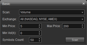 basic scan can automatically scan the entire market to give you real time results on each search you perform. it allows you to view market activity in real time. you can access charts, news and company research directly from your scan page. what's more, the results can easily be copied into esignal for further analysis.