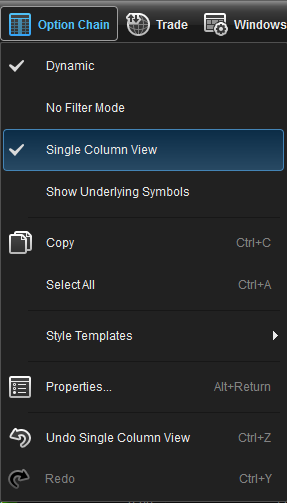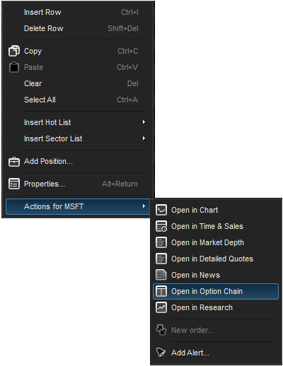 option chain right-click functions